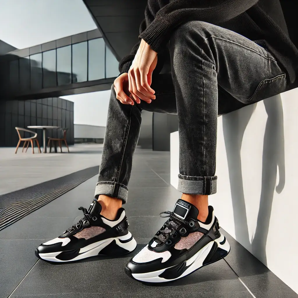 - کتونی با پچهای کاستوم + شلوار جین مشکی + پیراهن ساده