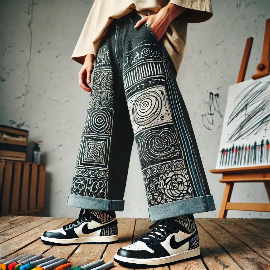 - کتونی طراحیشده با ماژیک + شلوار گشاد + تیشرت اورسایز