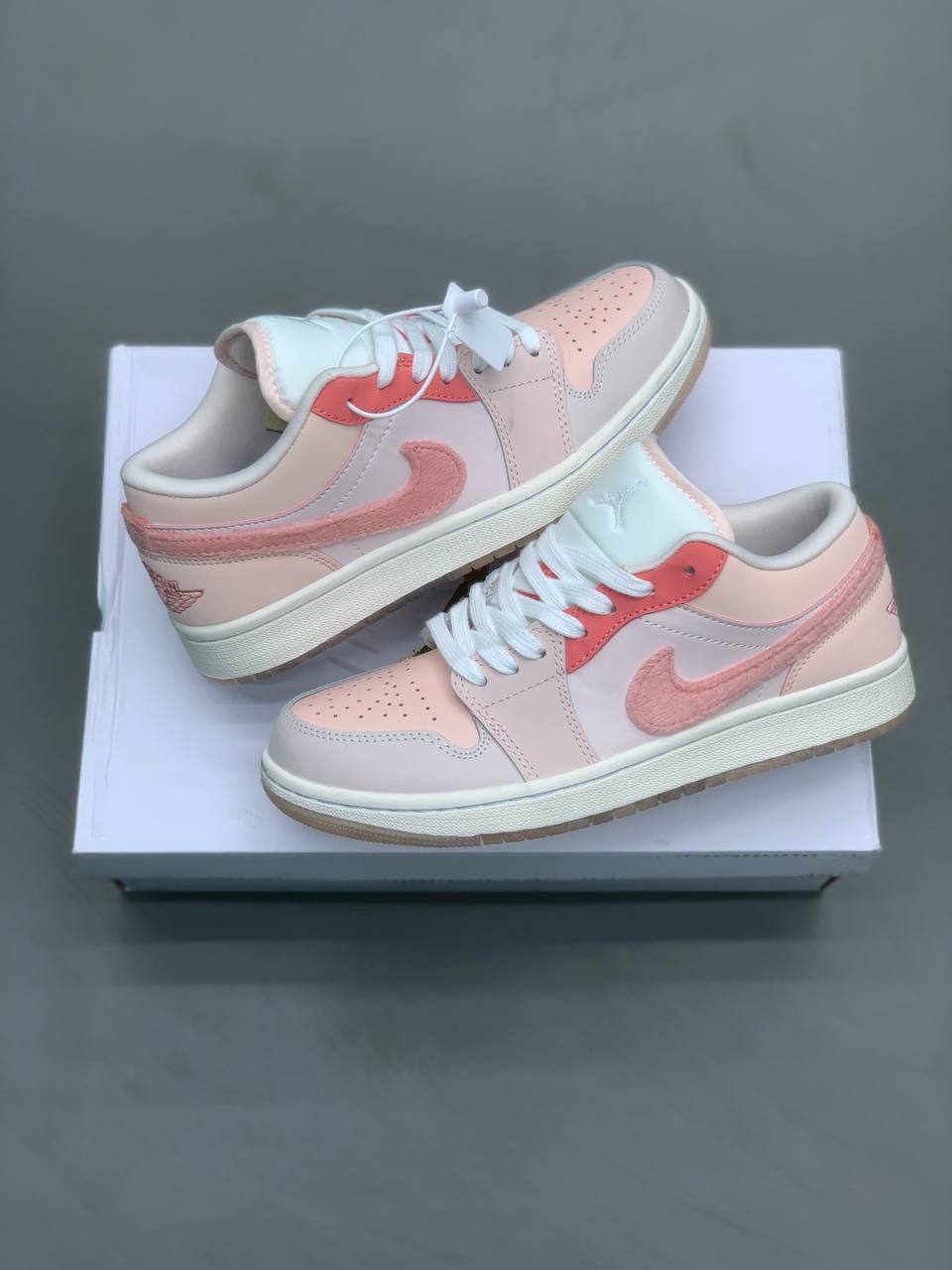 - خانمها میتوانند کتونیهای رنگی پاستلی مثل Jordan 1 Low Pastel Purple را با مانتوهای عیدانه و دامنهای بلند ست کنند.